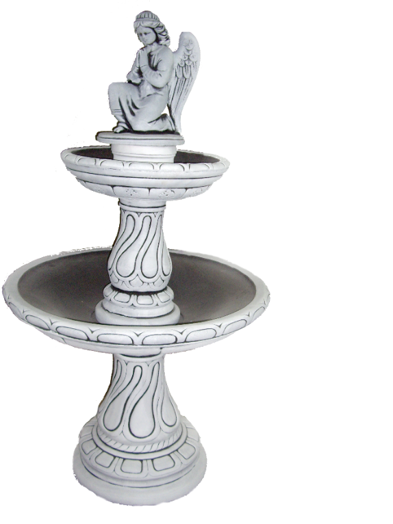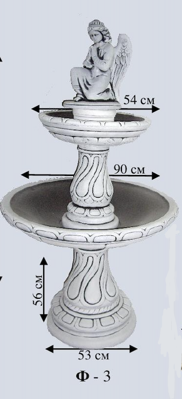 Розкішний фонтан з витонченою статуєю ангела та двома декоративними чашами. Статуя виконана з особливою увагою до деталей. Цей фонтан стане справжньою окрасою вашого саду та подарує відчуття небесної гармонії.