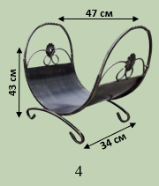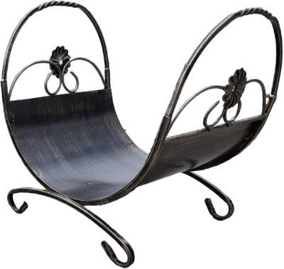 Вертикальна кована дровниця оригінальної форми для інтер'єру. Висока конструкція займає мінімум місця на підлозі. Чудово підходить для невеликих приміщень із каміном.