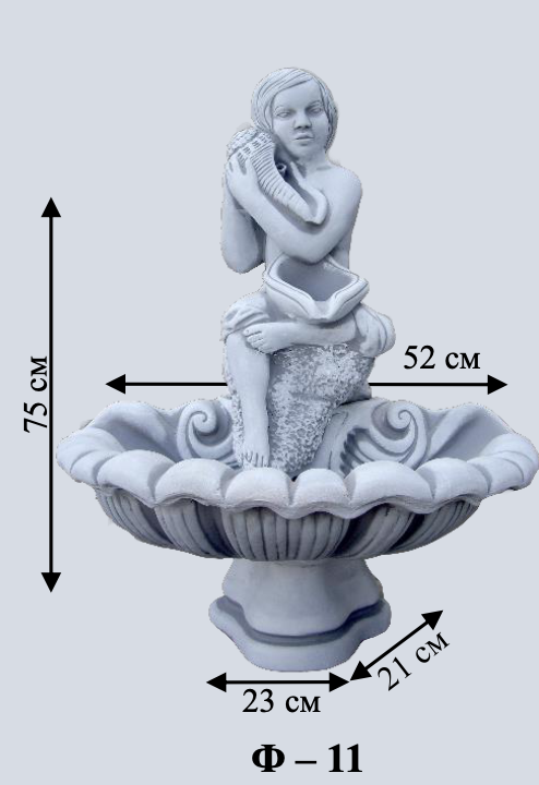 Чарівний компактний фонтан з декоративною статуєю дитини. Невеликий розмір робить його ідеальним для невеликих садків та терас. Додає атмосфери невинності та радості.