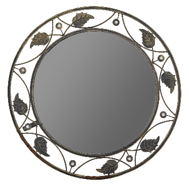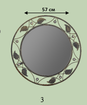 Невелике коване дзеркало діаметром 57 см — елегантний акцент для будь-якої кімнати. Тонка металева рама ручної роботи підкреслює красу відображення. Легке та зручне для монтажу на будь-яку стіну.