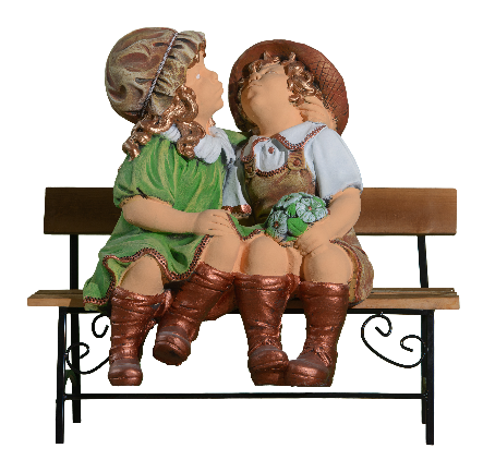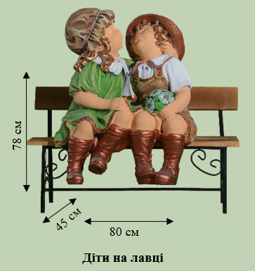 Зворушлива композиція — двоє дітей на лавочці. Наповнює сад теплотою та затишком. Велика деталізована скульптура ручної роботи.