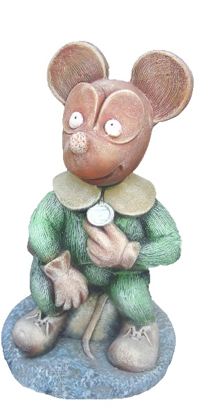 Кумедна мишка з бетону — милий сюрприз серед квіткових клумб. Оригінальна деталізація та природна поза роблять фігурку дуже реалістичною.