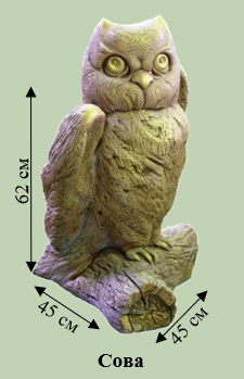Мудра сова з бетону — символ мудрості та знань. Велика деталізована фігурка стане окрасою будь-якого саду. Ідеально виглядає серед дерев та кущів.
