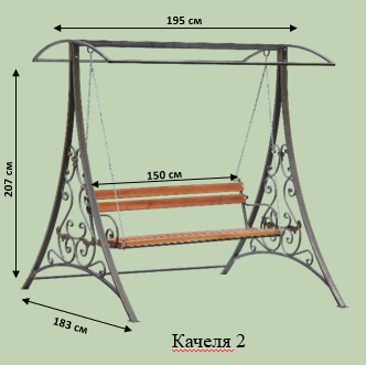 Розкішна кована качеля збільшеного розміру з просторим сидінням та навісом. Посилений каркас забезпечує безпеку та плавність руху при розгойдуванні. Ексклюзивний кований дизайн перетворює зону відпочинку на улюблене місце.