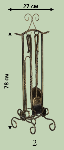 Лаконічний камінний набір на високій стійці з вишуканим декором. Ручна робота надає кожному інструменту унікального характеру. Чудово доповнює інтер'єр із каміном.