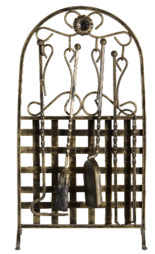 Компактний камінний набір на широкій стійці з орнаментом. Інструменти зручно розміщуються та легко дістаються. Оригінальний дизайн виділяє цей набір серед інших.