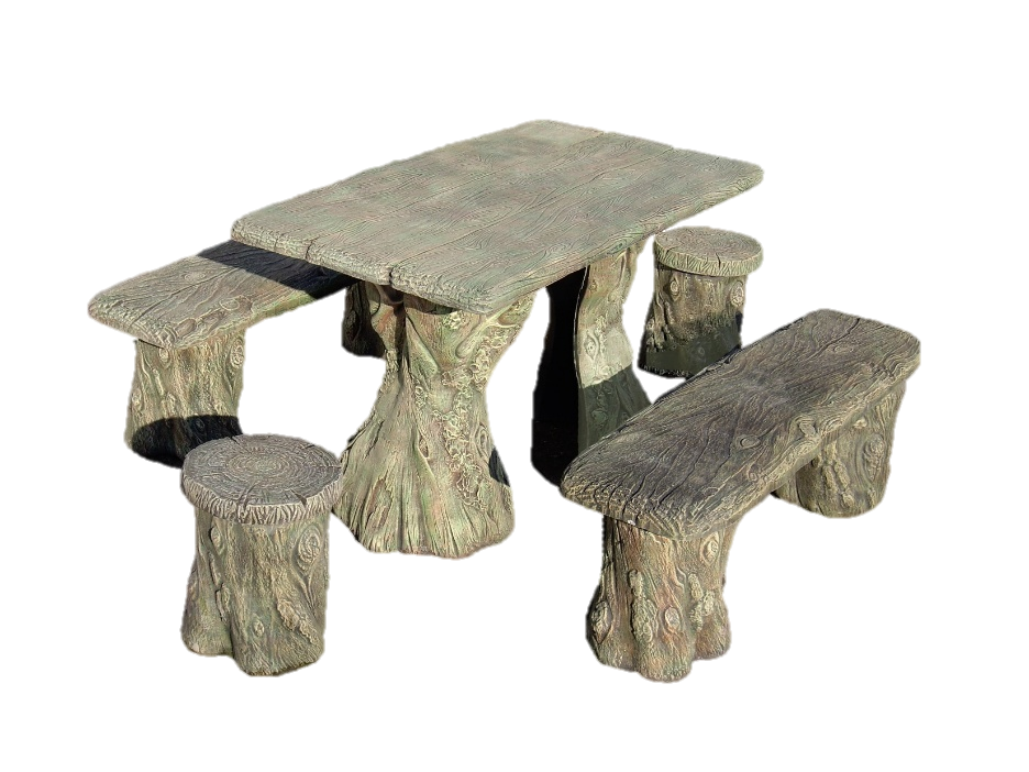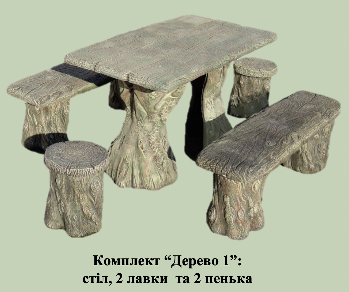 Комплект: стіл, дві лавки та 2 пеньки. Повний набір для відпочинку на природі.
