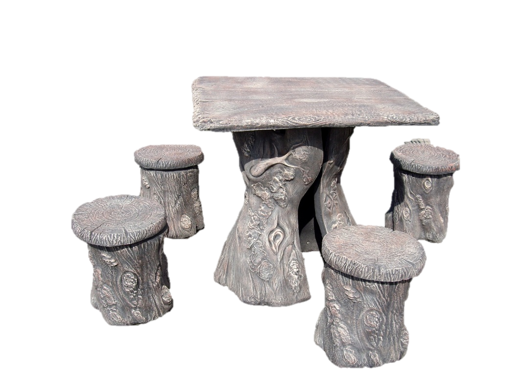 Комплект: стіл та 4 пеньки-табурети. Імітація дерева для природної атмосфери.