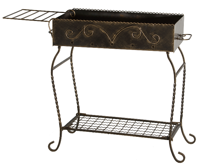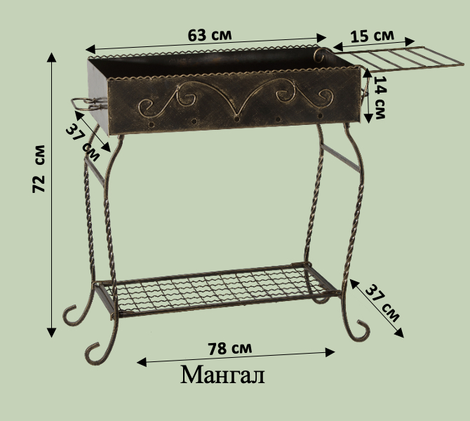 Міцний кований мангал із товстої бляхи для приготування їжі на вогні. Надійна конструкція витримує високі температури та інтенсивне використання. Ідеальний вибір для відпочинку на природі чи у дворі.