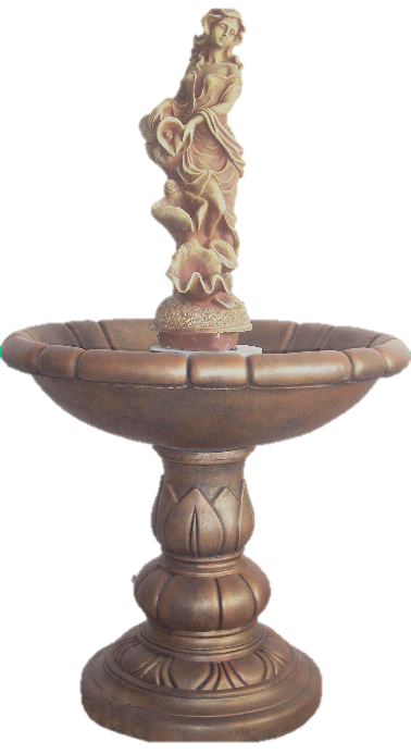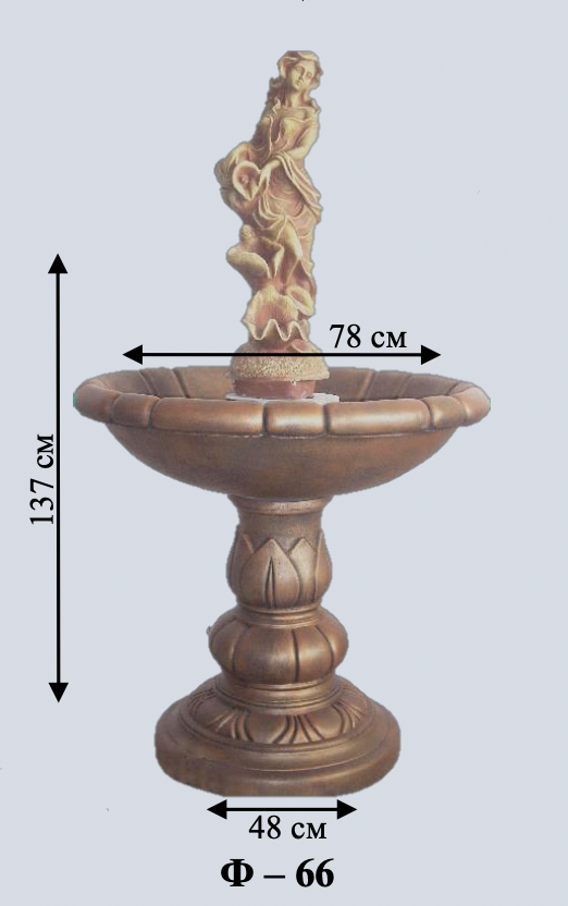 Середній фонтан зі статуєю музи — натхненниці мистецтв. Витончена постать з ліром. Одна декоративна чаша.