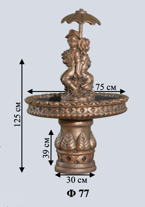 Середній фонтан з фігурою путті та однією чашою. Компактний та елегантний. Ідеальний для невеликого саду.