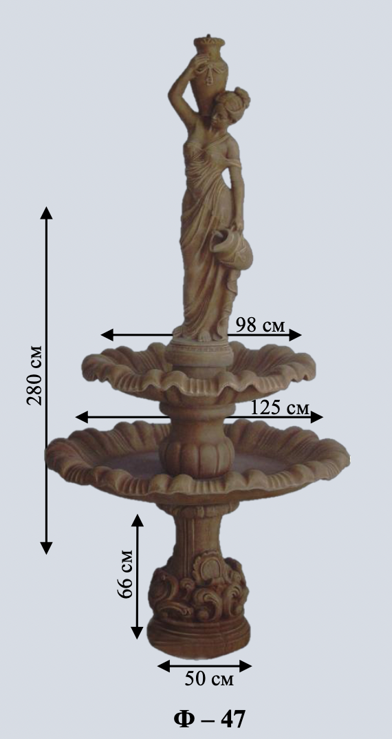 Найвищий двоярусний фонтан нашої колекції. Статуя олімпійського бога та дві масивні чаші створюють неймовірну композицію. Для найбільших садів та парків.