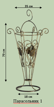 Класичний кований парасольник із високими бортиками та широкою основою. Надійно утримує парасольки та захищає підлогу від вологи. Традиційний дизайн пасує до будь-якого стилю.