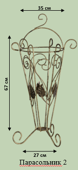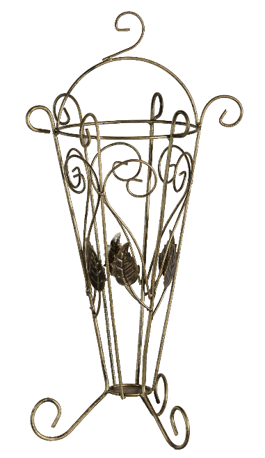 Кований парасольник із вишуканим орнаментом для передпокою. Вмістить кілька парасольок різного розміру одночасно. Стійка конструкція надійно тримається на підлозі.