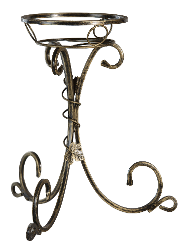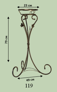 Широка кована підставка під квіткові горщики з вишуканим орнаментом. Підійде для великих вазонів у вітальні, на терасі або у саду. Ручна робота з міцного металу.