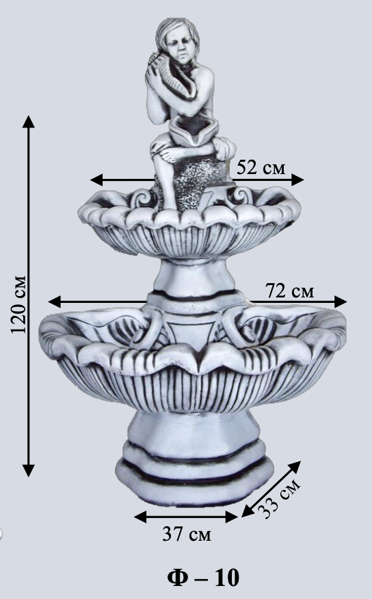Збалансований двоярусний фонтан з гармонійними пропорціями. Дві чаші різного розміру створюють красивий каскадний ефект. Ідеальний вибір для класичного саду.