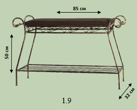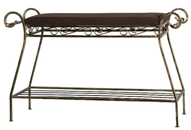 Кований пуф із подовженою формою сидіння у класичному темному виконанні. Вузька конструкція ідеально вписується вздовж стіни передпокою. Поєднує зручність та мінімалізм.