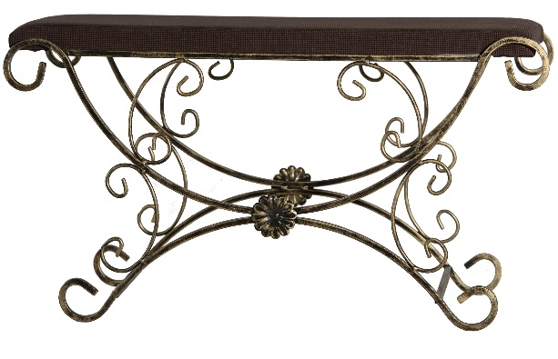 Кований пуф у білому кольорі з подовженим сидінням. Світлий каркас гармонійно поєднується з пастельною або білою оббивкою. Елегантний варіант для класичного або скандинавського інтер'єру.