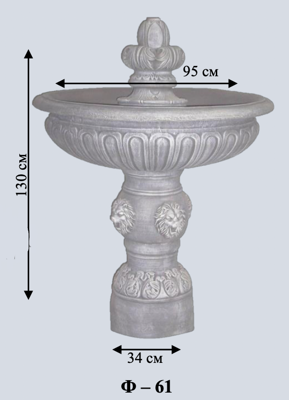 Середній фонтан класичного дизайну з однією широкою чашою. Простота та елегантність форм. Універсальний вибір для будь-якого саду.