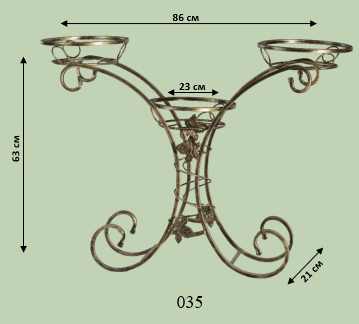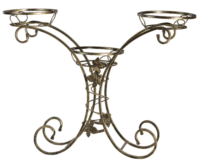 Елегантна багаторівнева стійка для квітів з плавними вигинами каркасу. Висота 86 см дозволяє створити яскравий зелений акцент. Кована вручну з високоякісного металу.