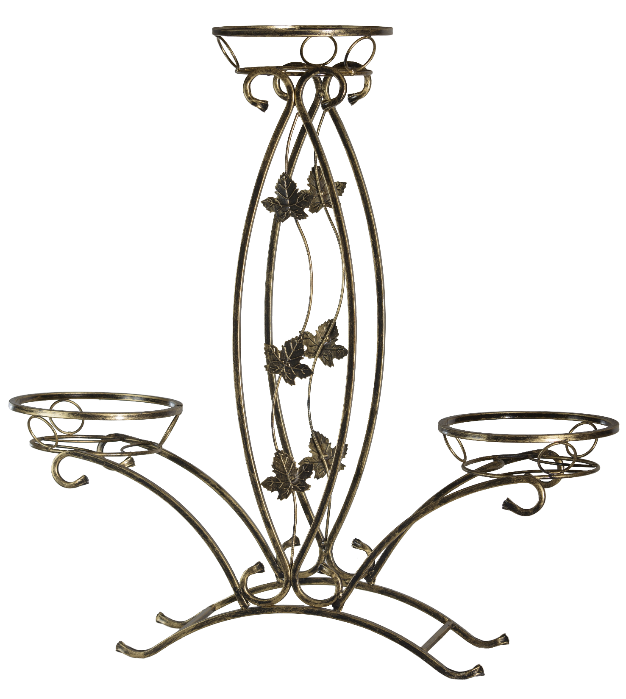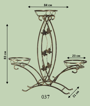 Вмістка кована стійка для квітів розміром 83х84 см — одна з найпопулярніших моделей. Кілька рівнів дозволяють красиво розставити рослини різного розміру. Виготовлена з міцного кованого металу.