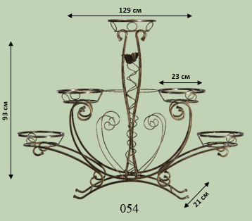 Величезна кована стійка для рослин з розміром 93х129 см. Підходить для просторих вітальних, оранжерей та зимових садів. Кілька ярусів дозволяють створити багатоповерховий зелений куточок.