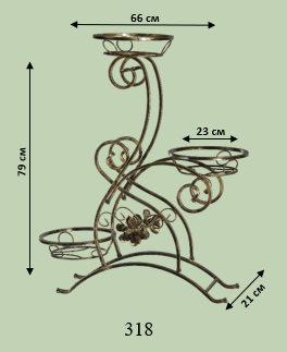 Масивна кована стійка для квітів з рівномірним розподілом тарілок по висоті. Ширина 66 см та висота 79 см забезпечують стабільність. Ідеальна для колекції середніх рослин.