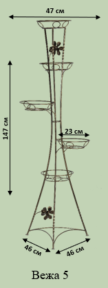 Кована стійка-вежа на 5 ярусів висотою 147 см. Вертикальна конструкція максимально ефективно використовує простір. Кожна тарілка надійно фіксується на металевому каркасі.