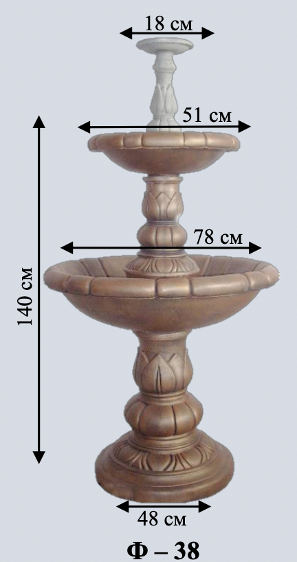 Середній триярусний фонтан у морському стилі. Три компактні чаші створюють мелодійний каскад. Ідеальний розмір для садів середнього розміру.