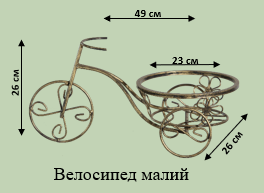 Декоративний кований велосипед невеликого розміру для інтер'єру. Ретро-стиль та ручна робота надають особливої чарівності. Можна використовувати як підставку для квітів.