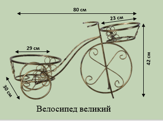 Великий декоративний кований велосипед — справжній арт-об'єкт. Вражаючі деталі та масштаб привертають увагу в будь-якому просторі. Підходить для саду, тераси або великої вітальні.