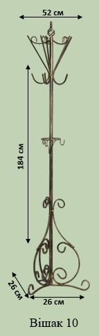 Стильний напільний кований вішак із сучасним дизайном та гачками. Середня ширина основи забезпечує баланс між компактністю та стійкістю. Універсальний варіант для будь-якого приміщення.