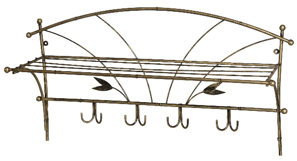 Напільний кований вішак із поличкою для головних уборів. Компактна глибина дозволяє розмістити його навіть у вузькому коридорі. Поєднує функціональність та художню ковку.