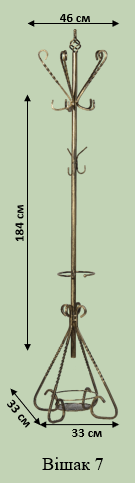 Витончений напільний кований вішак із вузькою основою. Мінімалістичний силует займає мало місця, зберігаючи функціональність. Підходить для офісів, кафе та домашніх передпокоїв.