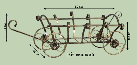 Великий декоративний кований віз для саду або інтер'єру. Вражаючий розмір та деталізація створюють ефект справжнього старовинного возу. Чудова підставка для квітів або декоративний елемент.